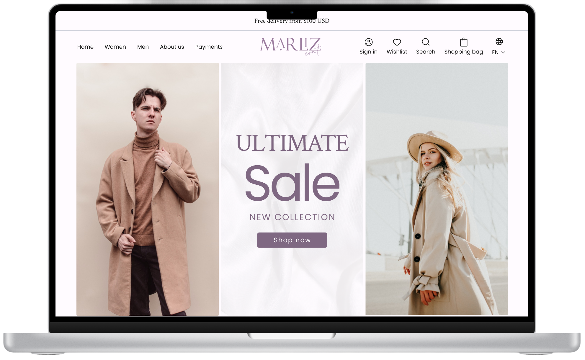 Diseño de e-commerce moderno y minimalista para una marca ruso-polaca de abrigos de invierno